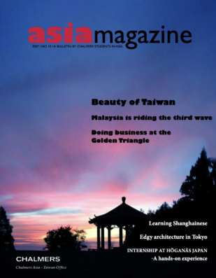 Asia Magazine is a joint effort carried out by Chalmers students on exchange in Asia, coordinated and compiled by the  Chalmers International Taiwan Office.