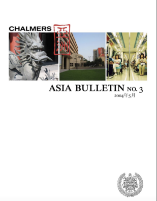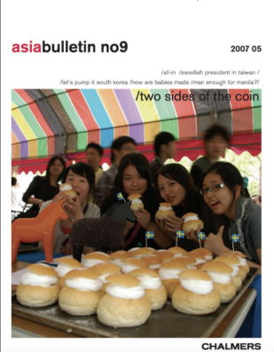 The magazine is meant to act as an informative, entertaining and inspirational source of topics regarding Eastern Asia. With this dynamic region in focus, it features articles on cultural, political, economical and social subjects. Information for Chalmers students on where to turn if they are interested in applying for an exchange program themselves is also provided.